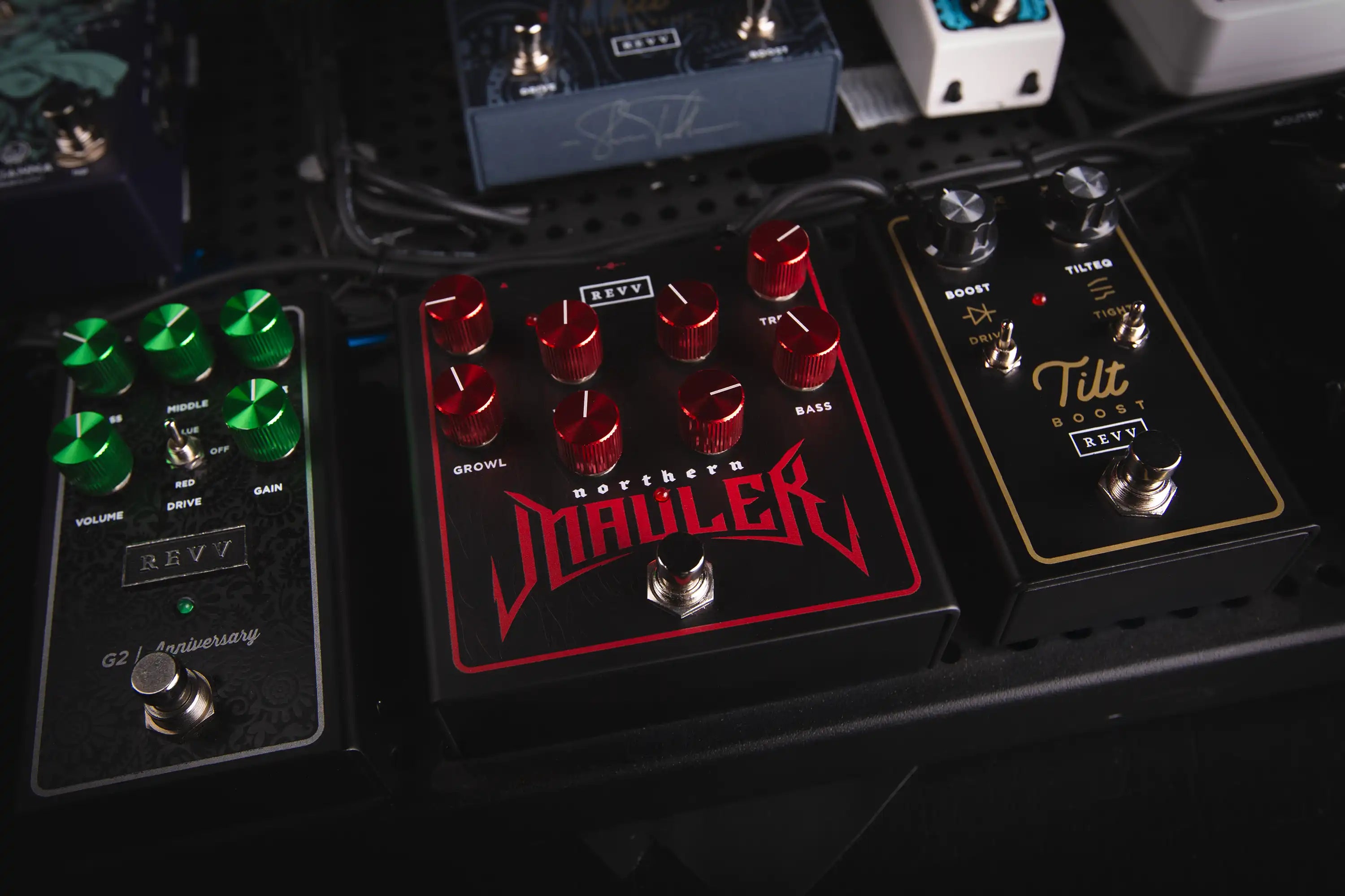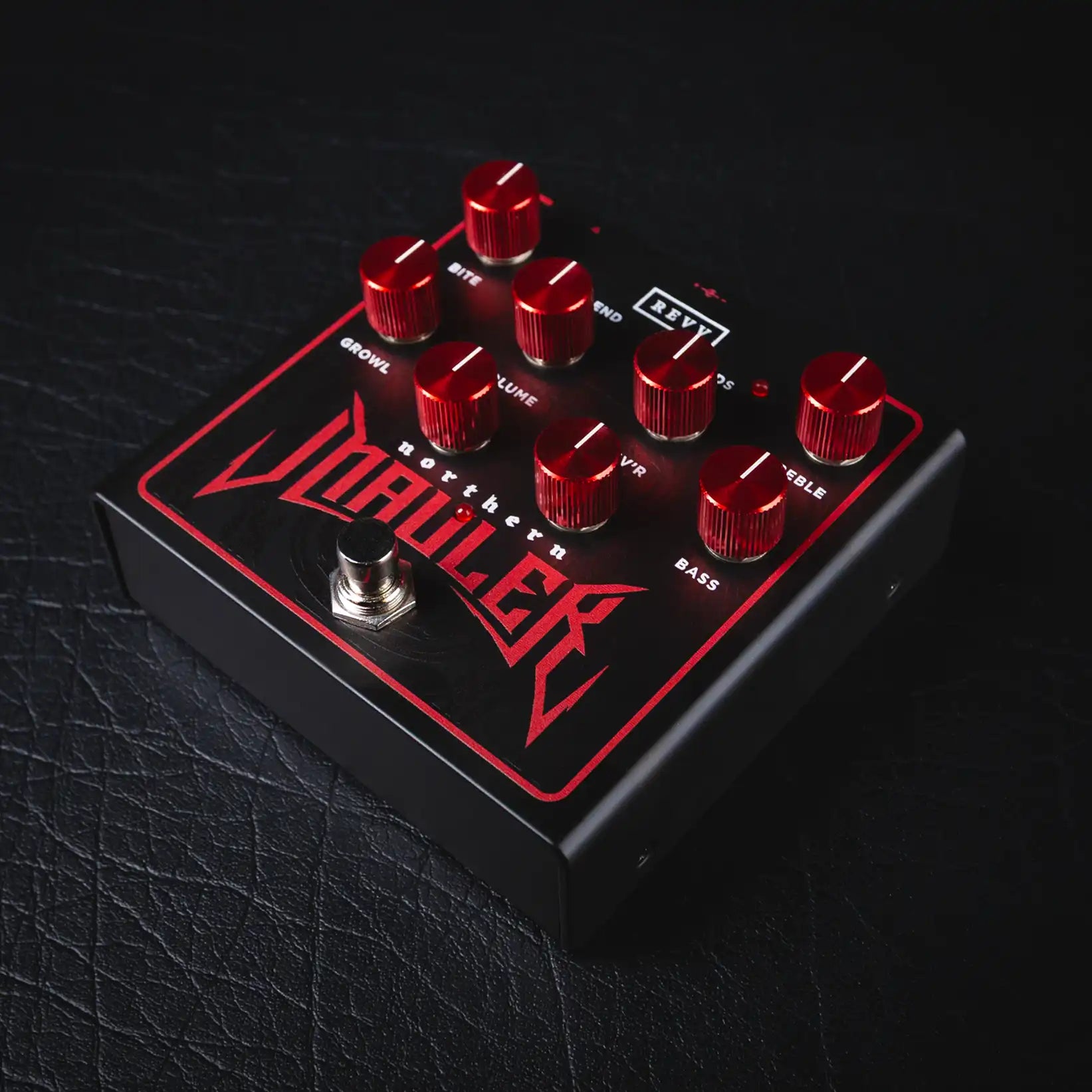 Glenn Fricker is one of Revv’s earliest supporters & a lifelong opponent of stale, sterile guitar tone. Together, we set out to combine Revv’s trademark high gain tones with a sound inspired by the legendary HM-2* with the Northern Mauler. Glenn often records a grindy, out-of-control sounding pair of rhythm guitars to blend in with more traditional high gain sounds, so we combined both into one pedal with a blend knob! He also wanted a not-quite-Red, not-quite-Purple channel tone for the Amp side, so we dialed in a thick but still punchy high gain amp sound that's unique to the Northern Mauler. This two-in-one format is a much more convenient way of getting that blended tone when playing live or writing.